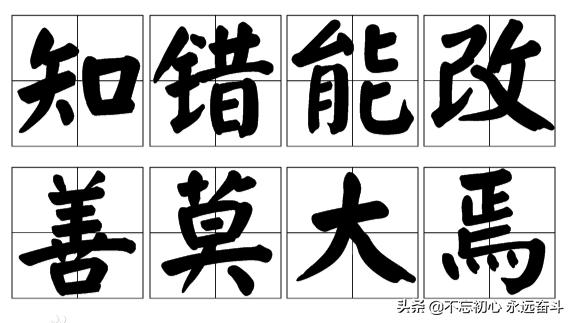 意思:知道错误能够改正是在良知认知方向的正确做法,是一件是好的事;"善"善良、羊在兽口而不入;"莫大"很大、超越、大字的提升;"焉"灬即心,... 人非圣贤...知错能改.善莫大焉;意思:知道错误能够改正是在良知认知方向的正确做法,是一件是好的事;"善"善良、羊在兽口而不入;"莫大"很大、超越、大字的提升;"焉"灬即心,良知在善与恶之间做了正确的选择,正直善良的心理所以很平静、淡然,焉字没有准确的定义,不论出现在任何词组中都代表好和善,但不会刻意表达出来;指一个人犯了错误后,能够认识并改正错误,就是最好的事情。