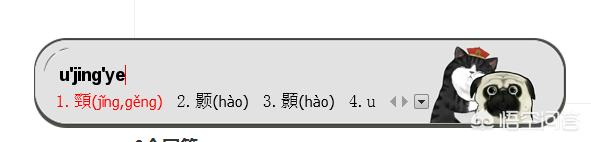 以颢为例子,依次输入u'jing'ye(也就是u+拆字)。